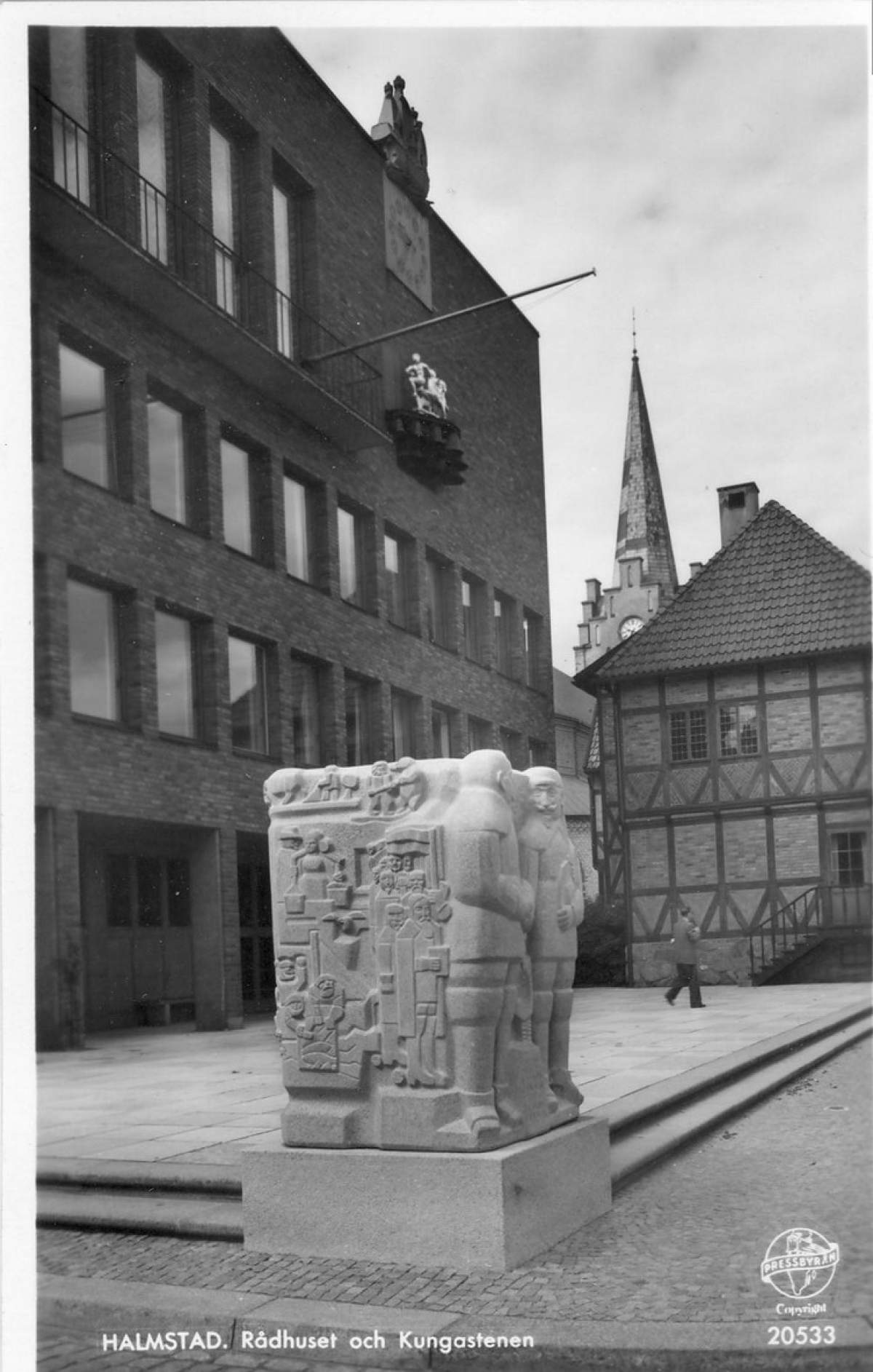 Sculpture in granite in front of Halmstad Town Hall.